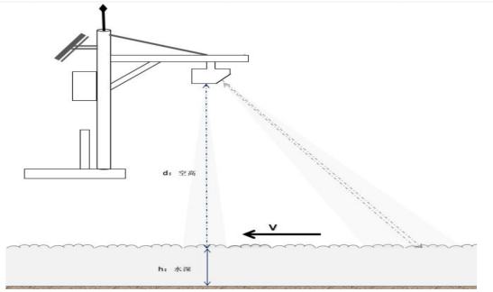 安裝示意圖如圖,現場安裝可借助于橋梁,支架等現有的建筑基礎,但必須保證流速儀雷達波發射方向與水流方向平行,流速儀發射波與水面呈45,出廠默認調節45°角